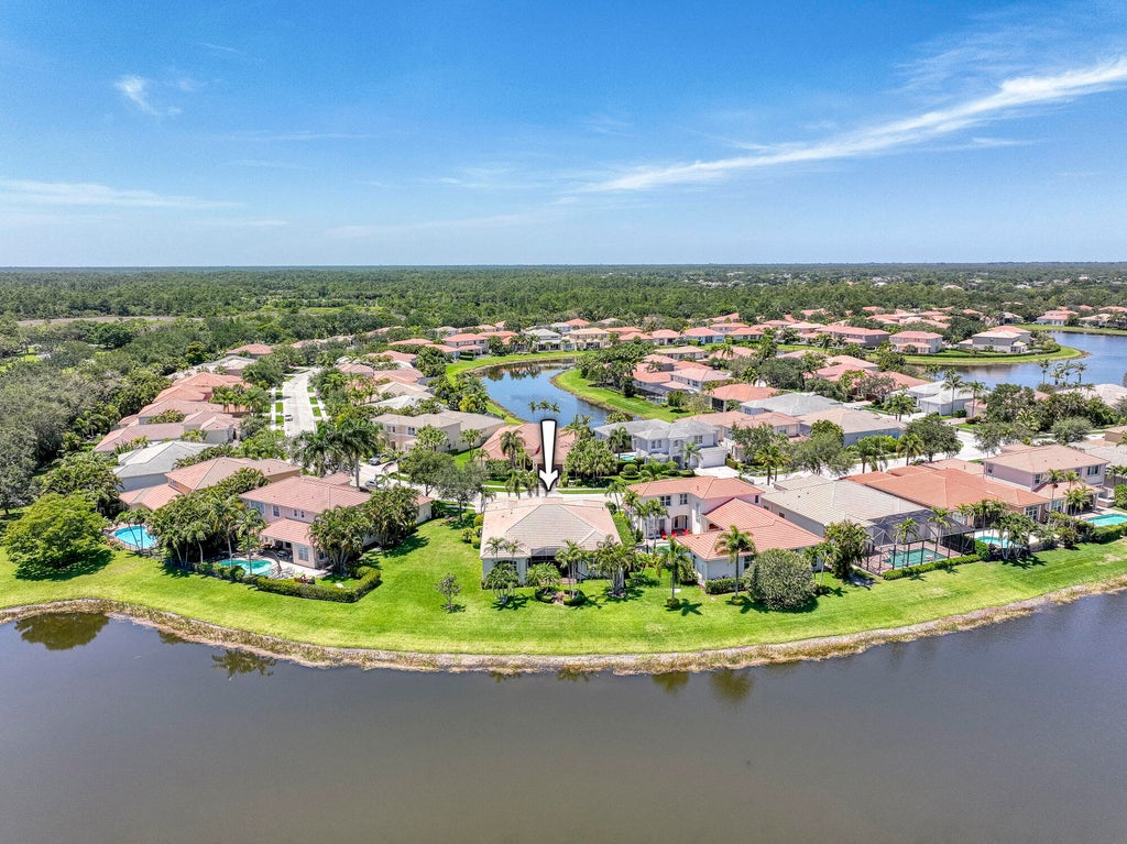 This 4 bed, 3 bath estate home resides in the highly coveted gated community of Mirabella with breathtaking water views. Boasting a fantastic layout with high ceilings, a split floor plan, and covered patio, this home leaves little to be desired. The spacious kitchen features gas appliances and a breakfast nook with plenty of countertop and storage space. Directly overlooking the water, the covered patio has direct access from the primary suite, formal living room, and family room. The garage has been extended providing tons of additional storage space. With a prime location in Palm Beach Gardens, Mirabella enjoys the added security of a manned gate along with tons of amenities including a community pool, clubhouse, fitness center, tennis, and pickle-ball courts.