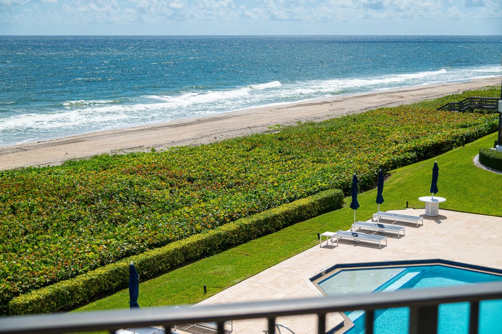 Your Dream Oceanfront Vacation Awaits! Renovated 2 bedroom, 2.5 bath townhome on the sand delights with spectacular ocean views from your private balcony and all principal rooms! Over 2200 square feet of elevated living with a modern flair. Upgraded kitchen with stainless steel appliances, quartz countertops, and breakfast bar. Renovated primary bathroom with frameless glass shower and dual sinks. Separate laundry room with washer and dryer for your convenience. Choose between white powdery sand or Highland Beach's tree-lined paved path for your daily walks. As an added bonus, there is a manicured, deeded private park on the Intracoastal across the street for your personal enjoyment. Have groceries delivered or visit Whole Foods and Trader Joe's - both within 2 miles of your