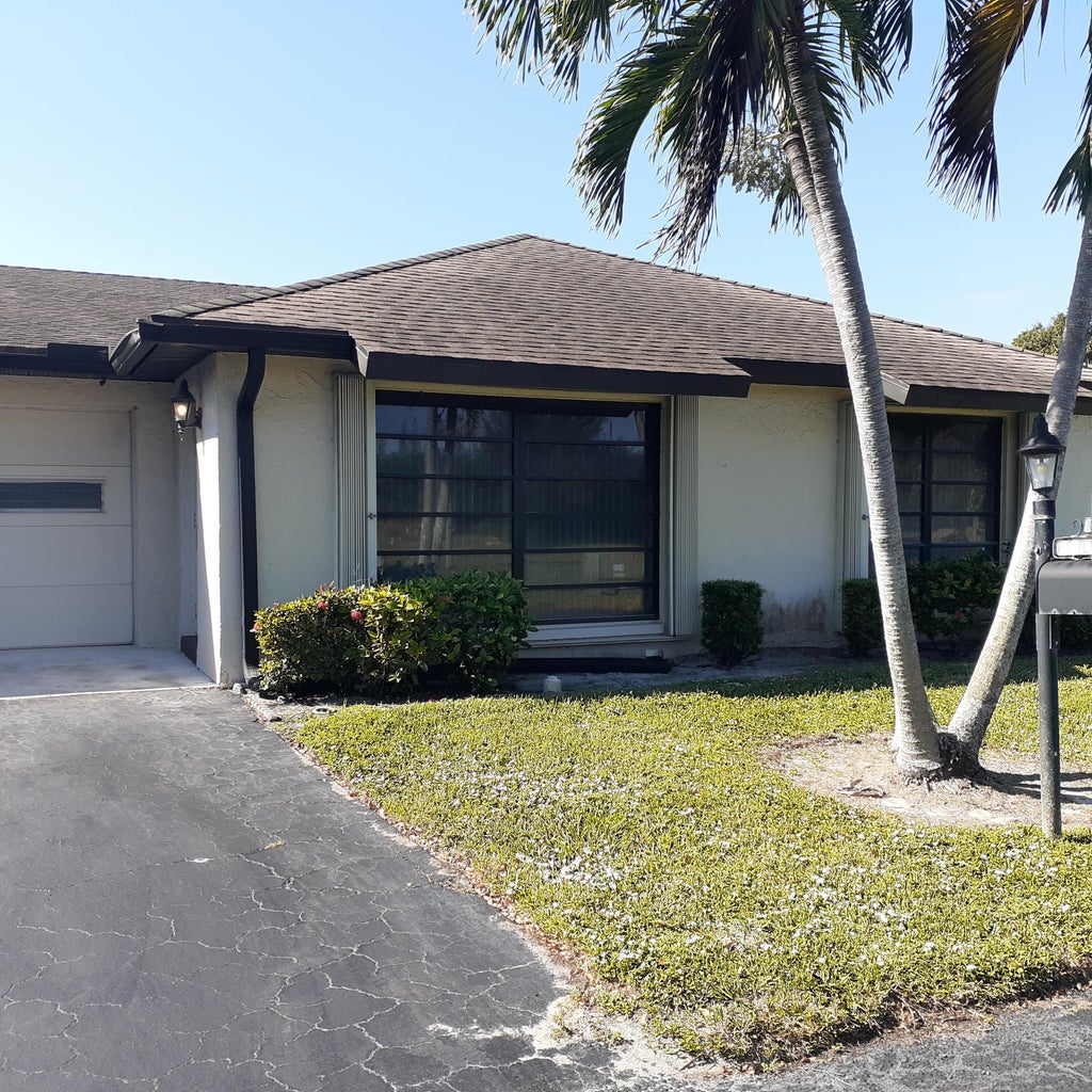 Last house on the lane. Exterior recently painted. Beautifully updated kitchen with 2 pantry's and granite counter tops. Tile throughout the home and carpet in the bedrooms. Sliders removed and porch floor level with the dining room. Master bedroom suite with walk in closet. New AC 7/2024. 6 pools and 6 clubhouses for your enjoyment. This home is a 2 minute walk to the pool. Located near shopping, restaurants, and 15 minutes to the beach. 20 minutes to the airportt. Sold turnkey with furnishings. Original owner! Per buyer reviews the price has been adjusted to reflect the need for updated baths. Full hurricane protection shutters. Sold furnished.