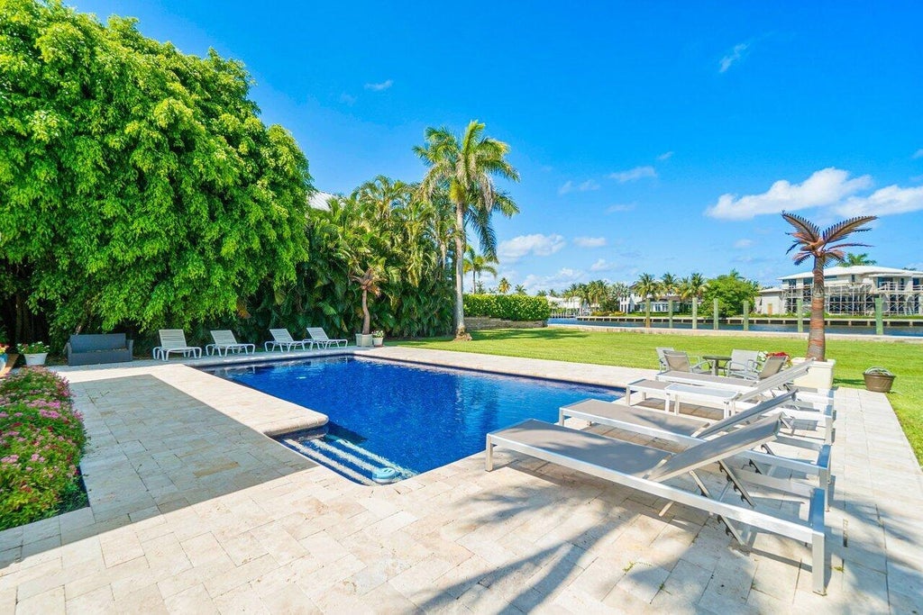 Exclusive, rare and exceptionally private, this is your opportunity to rent 1 Fisher Lane, a 4 bedroom/4 bath single family home situated on a half acre of sprawling waterfront property with 100' of direct intracoastal, private boat dock and pool. Nestled on a quiet street of only 4 homes, 1 Fisher is unique, private and tranquil, all while being less than a mile to all that Atlantic Avenue has to offer. This waterfront home is outfitted with newly installed impact windows and doors throughout; a renovated, open, modern/industrial chef's kitchen; beautiful waterfront Primary Bedroom with ensuite bath; sprawling fenced yard with mature palms and lush foliage; newly resurfaced private pool; living room with wood burning fireplace; circular driveway; and the ultimate in Florida charm.