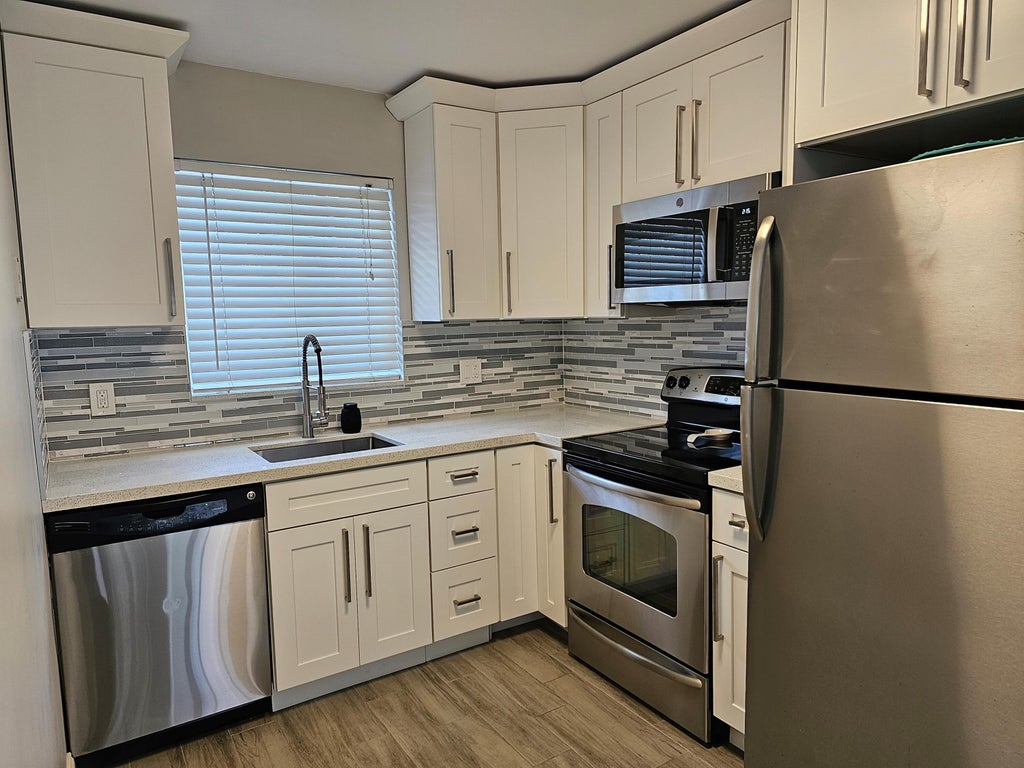 Beautifully remodeled w/ designer finishes, quartz countertop, shaker wood cabinetry, spa-like bathrooms, wood tile flooring, shiplap. New 55'' TV in livingroom. Open concept w/ large sliders that open to the screened patio perfect for dining and relaxing. Located in the heart of Tequesta & walking distance to shops, galleries, restaurant, library & Constitution Park offering green market, walking/exercise trail, movies in the park & food truck invasion. Short drive to fishing, golf & beautiful beaches. Tequesta Gardens is a 55+ community. Amenities include a large clubhouse w/ tons of activities bridge games, book club, fitness sessions & game nights. There are 2 heated pools w/ a BBQ, outdoor social area, putting green & croquet. Includes water, sewer, basic cable & internet.