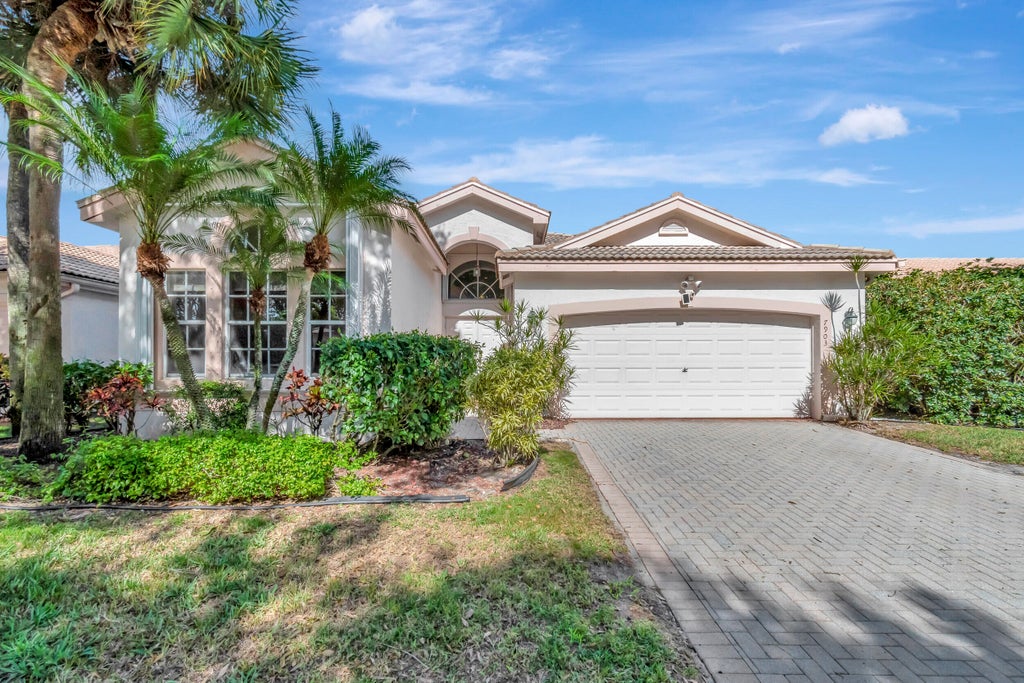 WATERFRONT 3/2 OPEN PLAN MEDITERRANEAN w/ Extended Lanai. New exterior paint! Needs updating but great bones. Spacious Living Room/Dining Room, Family Room open to Island Kitchen w/ newer SS appliances incl. Smart refrigerator. Breakfast Nook. Primary BR w/ 2 walk-in closets, 2 additional closets, large en suite. ALL Bedrooms have NEW carpet. Guest Bath, 2-car garage. Accordion Shutters! Total Clubhouse Reno debuts in 3 months!! Freestanding cafe by Ruven's with new screened patio, League Pickleball, USTA Tennis league, Main pool and Lap pool, spa, fitness classes, all OPEN through renovation. Bike, golf, bowling clubs, Baby Boomers, Pap Corps, Wine Club, more!