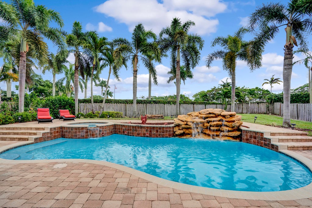 Open and spacious 4 bedroom 3 bath home in desirable gated community. Fantastic home for entertaining. Large spectacular back yard with gas heated pool, hot tub, rock waterfall and gas fire pit. Volume ceiling at front entrance. Updated kitchen with gas stove. Huge family room. Pool and waterfall view from kitchen and family room. Wood look flooring throughout the upper and lower living space. Large master bedroom with views to pool and spa. Bright master bath with sky light, roman soaking tub and separate shower. Amazing 2 car garage with epoxy paint floor, custom built in shelving and A/C. 1,000 gallon inground propane tank. Fully fenced privacy. All area schools are A rated and within walking distance. Easy access to shopping, beaches, highways and airports.