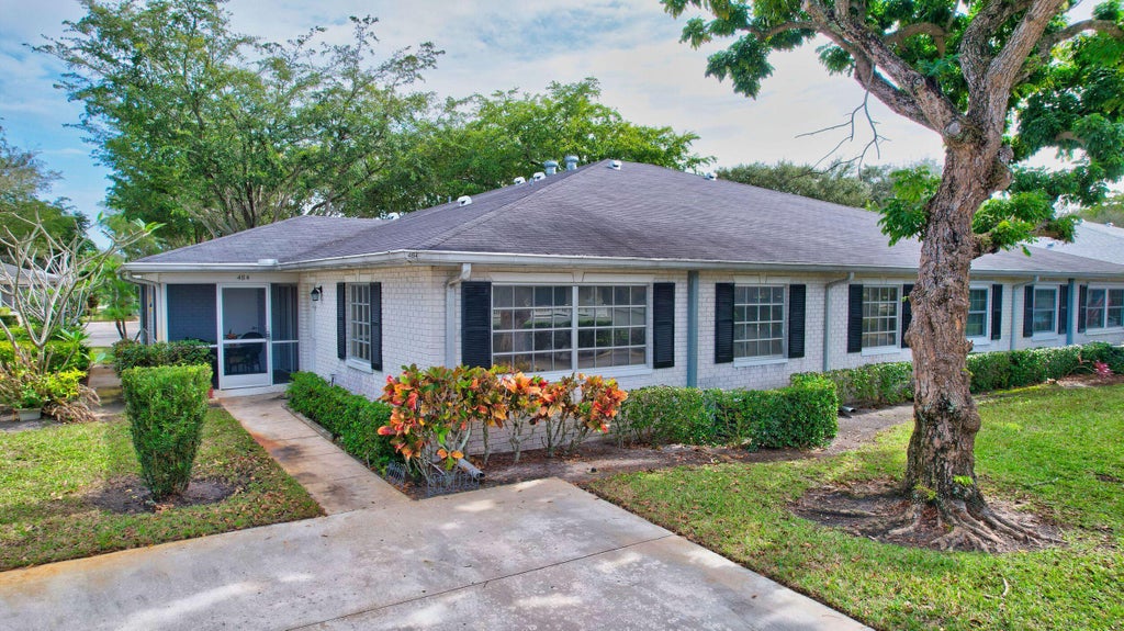 Immaculate, ready to move in and fully renovated! New roof by association in 2017. New refrigerator and dishwasher. Kitchen and bathrooms have quartz counters. Washer and dryer in unit. Leasing allowed after 2 years. One pet up to 15 lbs (at maturity) allowed. Two dog parks very close. This 55+ community is beautifully maintained and has a LOT to offer. Clubhouse, crafts, bingo cards, 3 pools, tennis, pickleball. Very close to shopping, dining and recreation.