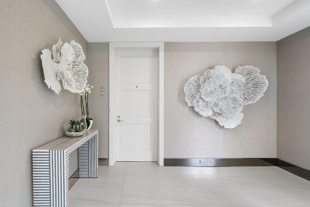 Welcome to the townhouse of your dreams! Perfectly located in the heart of downtown Boca Raton this bespoke residence is the epitome of townhome living in one of Boca Raton's most coveted full service buildings, Tower 155. Fully furnished and professionally decorated this exquisite townhome boasts 2,850 of interior square feet of unparalleled luxury and over 1,000 square feet of private outdoor courtyard space. This exceptional property features 3 ensuite bedrooms, including 2 impressive primary suites and half bath. As you step inside, you'll be greeted by the grandeur of the sun dreched living room with its soaring 20-foot-high ceilings creating a truly luxurious atmosphere. The attention to detail is evident throughout, with floating wood and glass staircase, custom TV feature wall