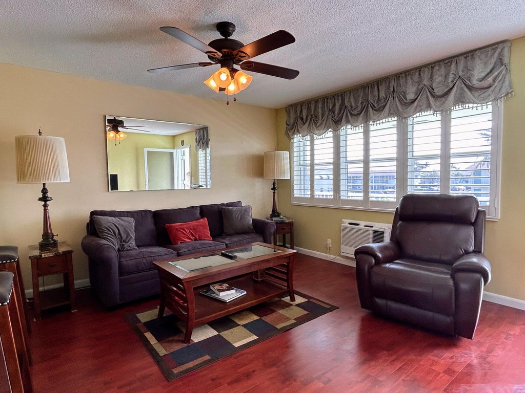 MOTIVATED SELLER!! SUPER CUTE 1/1 IN DESIRED 55+ STERLING VILLAGE. OPEN KITCHEN W/ RECESSED LIGHTS ABOVE BAR, DIMMER FOR DINING, SMOOTH TOP RANGE & MATCHING FRIDGE. UPGRADED ELECTRIC BOX, REPLACEMENT WINDOWS, PLANTATION SHUTTERS, $1000 CUSTOM BLINDS MADE FOR LANAI SLIDER. BATH HAD COMPLETE REMODEL W/ WALK IN SHOWER, MEDICINE CABINET FOR EXTRA STORAGE & VANITY & HIGH TOILET. 2 CEILING FANS REPLACED AND CHERRY LAMINATE FLOORING IN MAIN PART OF CONDO. LANAI IS TILED WITH PLEXIGLASS SLIDER WINDOWS THAT CAN BE CLOSED DURING RAIN. ACCORDION HURRICANE SHUTTERS ON FRONT AND BACK. NICELY FURNISHED, TURNKEY 7 READY FOR NEW OWNERS TO MOVE RIGHT IN! STERLING VILLAGE NOW HAS INTERNET INCLUDED IN HOA DUES, FRONT ENTRANCE WITH GATED SYSTEM.