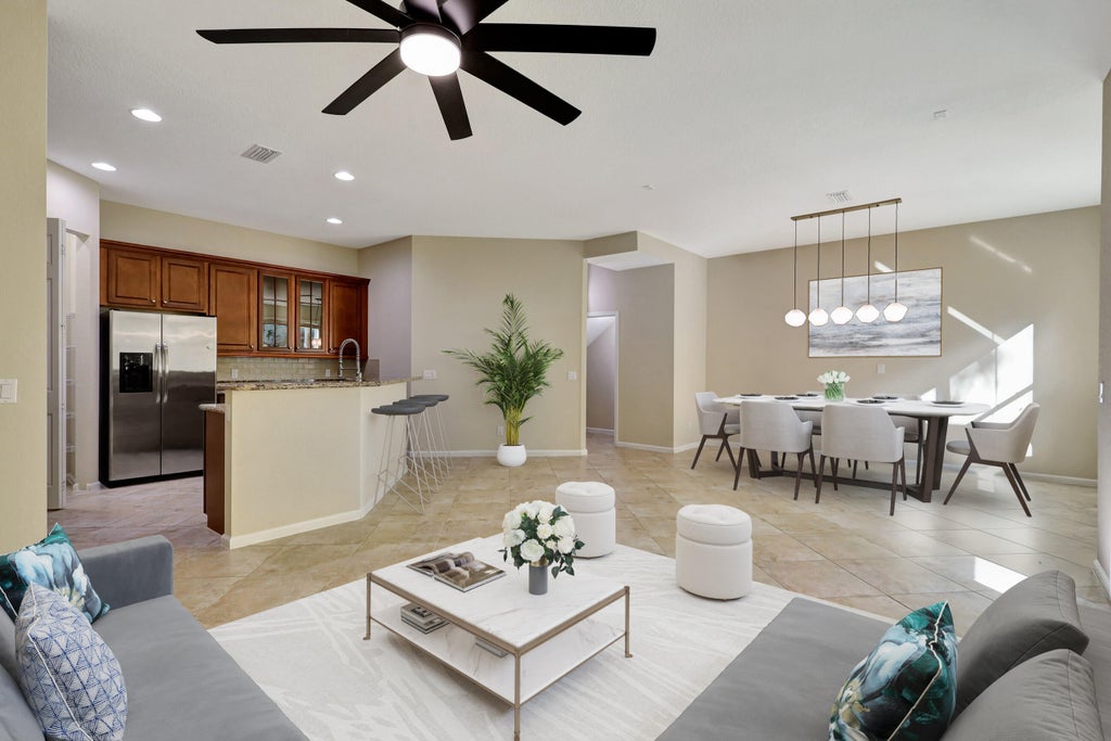 Discover luxurious living in the highly coveted Aurora Model at Hampton Cay, a private gated resort-style community that defines the essence of Location! Location! Location! This 2154 sqft haven boasts 3 bedrooms, plus loft, 2.1 bathrooms, and a 2-car garage with an epoxy floor, all within the secure embrace of a CBS home adorned with impact glass.As you step inside, the ten-foot ceilings on the first floor create an atmosphere of openness, seamlessly connecting the living, kitchen, and dining areas. Revel in the ambiance illuminated by daylight LED lighting and the charm of beautiful laminated wood flooring that graces the stairs and the entire second floor, eliminating the need for carpeting.The residence is thoughtfully equipped with modern conveniences, including ample pantry