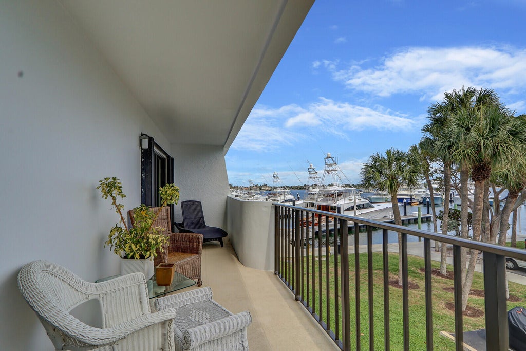 Direct Waterfront Views from this 2 bedroom split plan with an exceptional floor plan. If you love big boats, this is the location for you. Wide Waterfront Balcony. Steps to the marina and 2-mile waterfront walking path. Modern Kitchen Cabinets, Updated Primary Walk-in Shower. Lots of closet space. We marked washer & dryer in unit, but this unit does not have a washer & dryer, but the building allows you to put them in. Garage parking spot. Extra wide great room and kitchen can be opened up to the main living space. New impact sliders in Living Room and both bedrooms. Walk to Belle's Marina Restaurant. Steps to the heated pool, community rooms and tennis court.