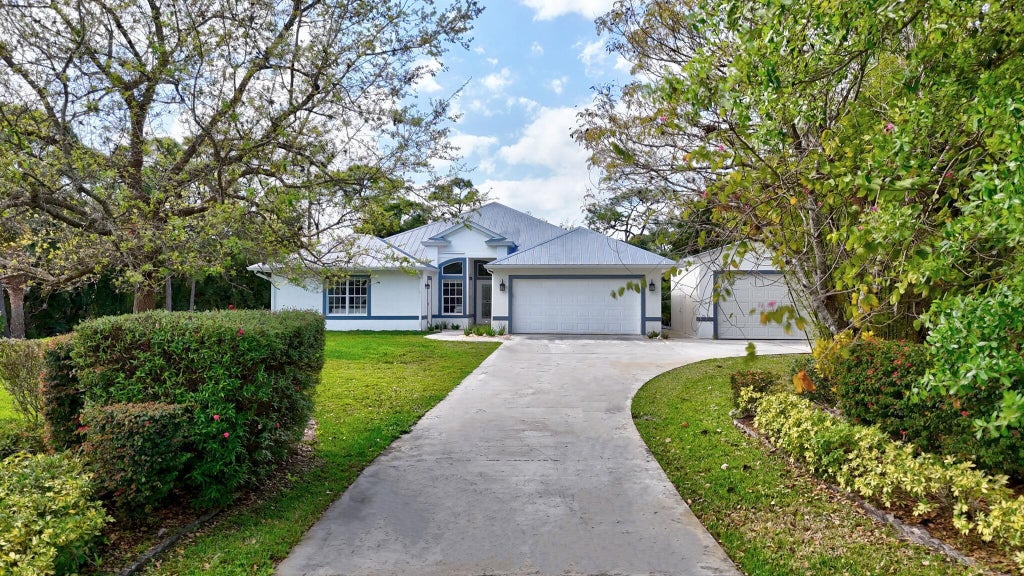 This gorgeous 3/2.5 CBS home is situated on a very private 1/2+ acre lot surrounded by acres of preserve in a small secluded community! Owners have use of community ocean-access boat ramp and day dock! Spacious bright & open concept living area and kitchen overlooking the serenity. All new white plank tile flooring throughout. Kitchen recently renovated and opened up with beautiful new countertops and expansive bar, newer appliances, & spacious breakfast nook. All bathrooms have been beautifully renovated. 2nd bedroom is very large. 3rd bedroom being used as an office. Large covered porch, open paver patio. Home has been freshly painted in and out. Large 20x25 detached garage/workshop w/10 ft door for your projects and/or toys. So private and secluded yet convenient to everything!
