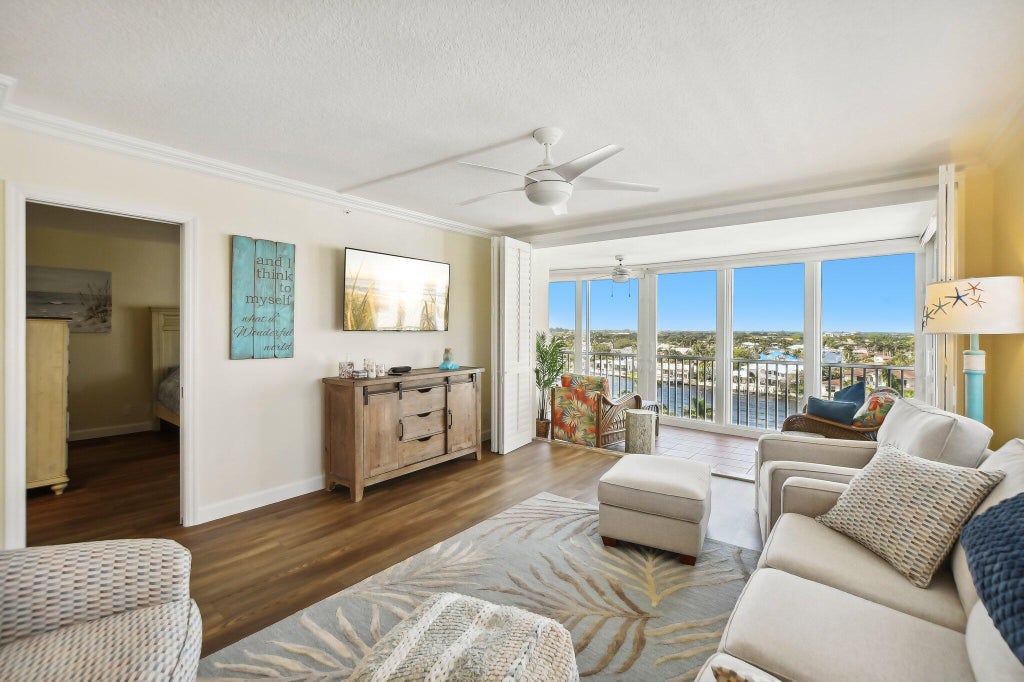 Annual lease or off season min 4 months ($3,500/mo) or Seasonal lease min 4 months ($6,000/mo). Step into luxury with this fully furnished, recently updated 2-bed CORNER condo boasting stunning views. As you approach the front door, bask in the warm sunshine and ocean vistas. Inside, revel in the abundance of natural light from the coveted corner position, complemented by breathtaking direct intracoastal views. This unit exudes luxury, from its kitchen finishes to its open floor plan to its contemporary coastal vibes. The Seagate condo, a 55+ community, offers a plethora of amenities for your enjoyment, including private beach access, putting greens, 2 community pools overlooking the intracoastal, and a clubhouse with a fitness center and billiards room.