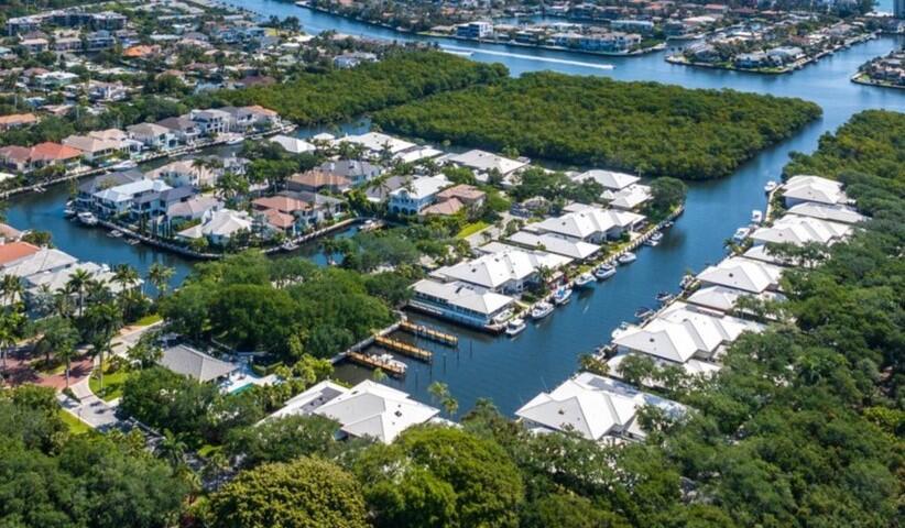 The best water views in Boca Marina Yacht Club. Your private 60' dock allows you to experience the ultimate waterfront lifestyle living in this hidden gem nestled in a lush paradise. This exclusive community boasts deepwater access with no fixed bridges, providing seamless ocean navigation. Revel in breathtaking water views and the convenience of your own private 60' dock, fulfilling every boater's dream.This exquisite 3-bedroom, 3-bathroom waterfront villa is situated on a spacious .23-acre lot adorned with stunning trees and meticulous landscaping. With endless potential, this villa awaits your personal touch to transform it into a masterpiece.