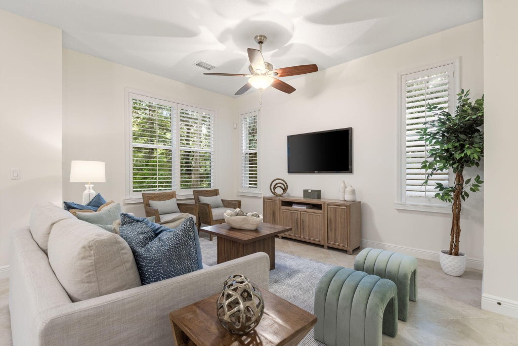 Paradise found! This welcoming 3-bedroom, 2 1/2-bath end unit townhome is a serene retreat in the heart of Palm Beach Gardens. Prime location in the corner of the community backing to a tranquil preserve, ensuring unparalleled privacy and serenity. Revel in the blissful absence of neighbors and traffic, offering a calming oasis close to all that Palm Beach Gardens has to offer. Built in 2015 with CBS construction and impact glass throughout, this residence is not just a home--it's a sanctuary. Inside, freshly painted with high ceilings and an abundance of windows - all with plantation shutters. The open kitchen boasts stainless GE Profile appliances. Custom cabinetry in the loft area makes for a bespoke home office. A Murphy bed in one of the guest bedrooms adds versatility.