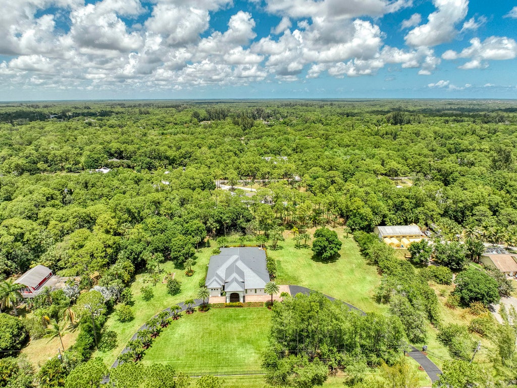 Welcome to the warmth and elegance of this 2.5 acre Jupiter FL estate home located just 5 miles from Jupiter Beach! Key features begin with a circular driveway, a grand portico entrance, and many thoughtful interior upgrades: impressive crown moldings; arched alcoves; 14' coffered ceilings; chef's kitchen with Wolf gas cooktop and wine bar. Exterior offers an immense screened lanai for outdoor living and entertaining, heated saltwater pool with water features, extensive tropical landscape, and gardener's paradise with fruit trees and raised garden boxes. Also includes whole house RO water filtration system, storage room on extended garage, music system, and spaces for large family gatherings. New metal roof and hurricane impact windows throughout, 2 new AC's, 2 solar entrance gates