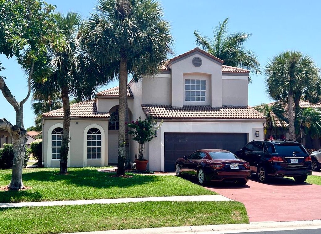 Beautiful lakefront house at Boca Pointe Country Club. Club membership not mandatory but available. Smart home with brand new LG kitchen appliances, AC and lights all remotely operable from your cell phone.Master bedroom plus another bedroom with a full bath on first floor and two bedrooms with a Jack and Jill bathroom on second floor.State of the art gourmet kitchen with two sinks and two ovens, professional grade exhaust fan, wine cooler and top of the line refrigerator. Accordion hurricane shutters.Walking distance to houses of worship. Screen enclosed pool with lake view and south exposure. Entry porch and side patio in travertine marble.