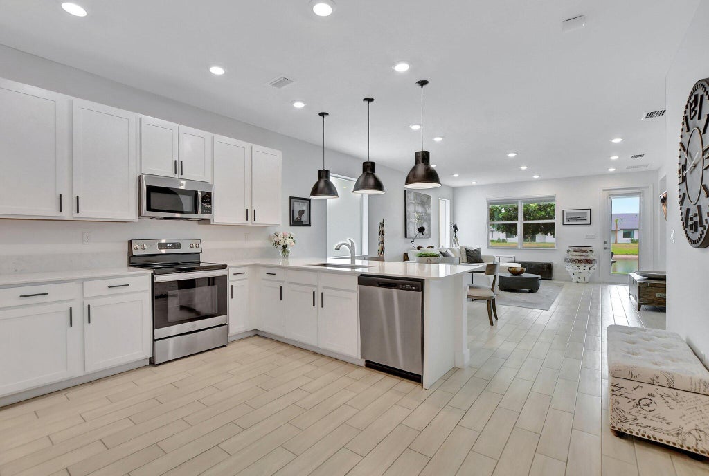 Gorgeous, contemporary newer construction, turnkey retreat in gated 55+ Avalon Trails. Built in 2021, this 3/2 single family home features luxurious finishes, all hurricane impact windows & doors, all porcelain tile flooring, upgraded LED lighting, quartz countertops & smart home music, thermostat, & Ring doorbell camera. Located on the finest oversized pie shaped lot on the development's only cul-de-sac with an unobstructed lake view. Furniture negotiable. Low HOA includes cable, wifi & landscaping. Avalon Trails features one of the newest, active, completed clubhouses east of the Turnpike on a former golf course. Amenities include: social events, pools, pickleball, tennis, game room, & miles of trails and lakes around the community. Sellers are building a new home & are ready to close.