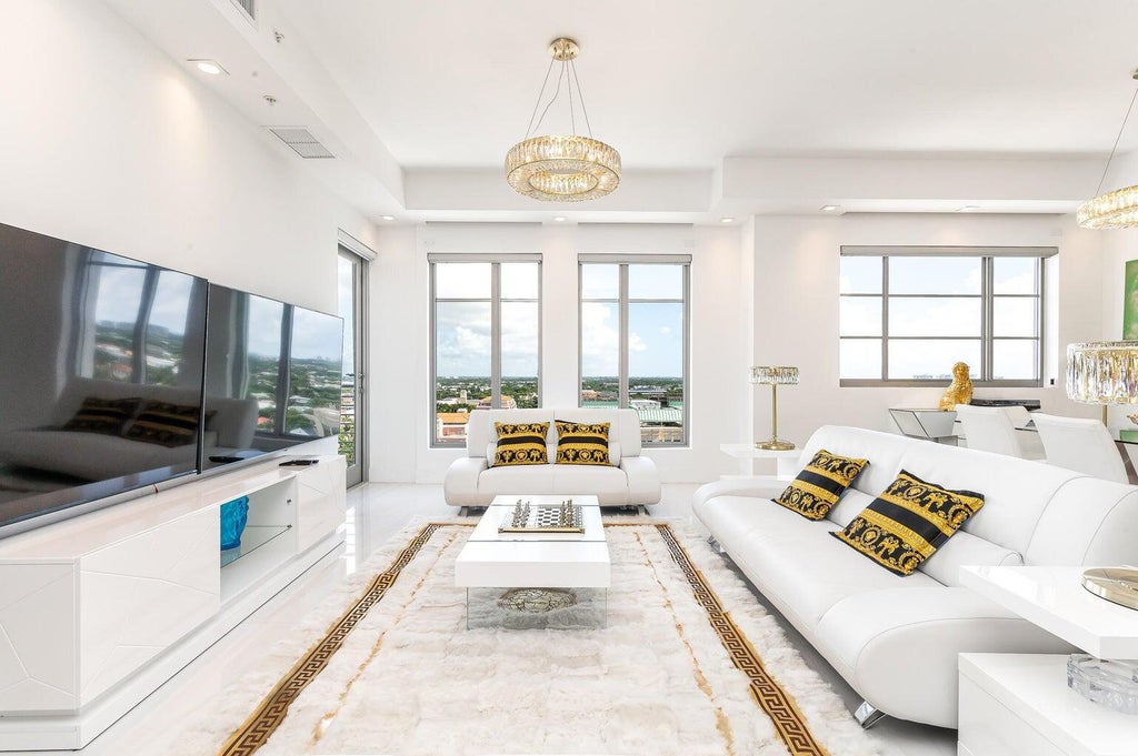 Our exclusive rental package includes all utilities-electricity, high speed internet and cable-plus bi-monthly cleaning service. This luxurious fully furnished penthouse offers an unparalleled living experience.Enjoy garage parking with an elevator to your front door, 24 hour security, multiple pools and a rooftop bar. Overlooking Mizner Park. This Versace inspired penthouse is available now !Elevate you lifestyle in this exceptional residence. Also available for seasonal rental.