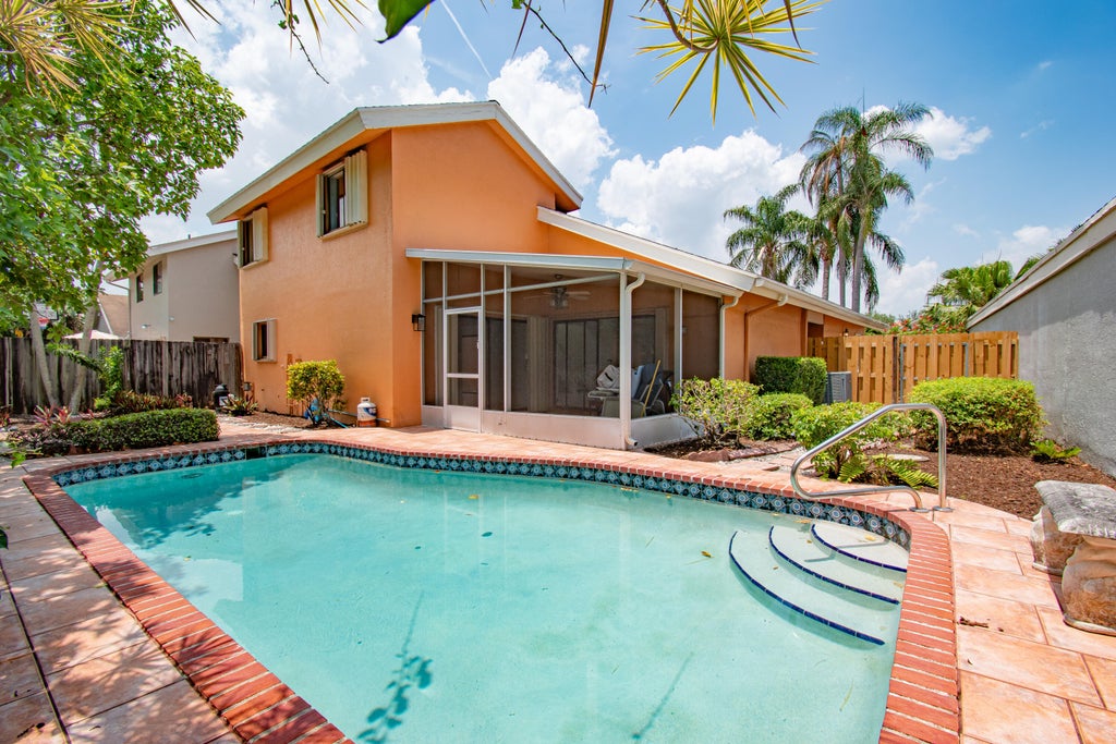 Huge Price Improvement ! priced Below Market! Soaring ceilings welcome you as you enter this stunning 4-bedroom, 2.5-bath home. Featuring a beautifully paved, fenced-in pool, a covered screened patio, and a lushly landscaped yard complete with an avocado tree, this home is perfect for outdoor living and entertaining.This is the lowest-priced 4-bedroom home on Montoya Circle, offering exceptional value. Roof(4 Years Old)The en-suite primary bedroom, complete with a walk-in closet, and a second bedroom are conveniently located on the main floor. Upstairs, you'll find two additional bedrooms, a shared full bath, and a huge storage closet.