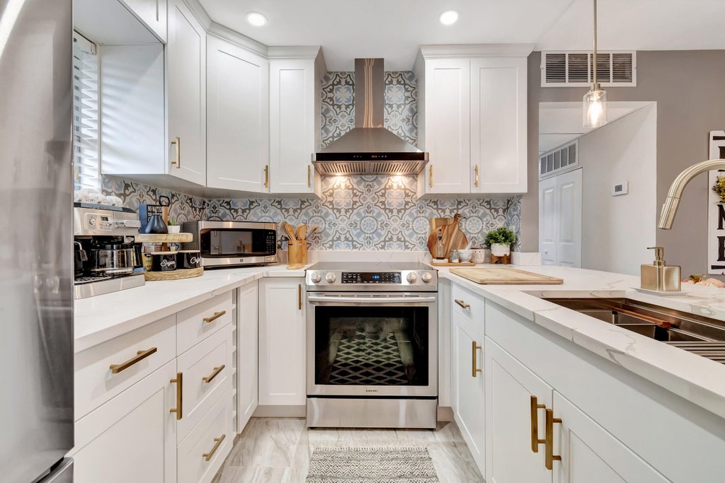 Totally remodeled 2 bedroom, 2 bathroom condo with golf course views from the front rooms. This 55 plus active adult community is immaculate 2nd floor condo, that features a newer A/C, central vacuum system, quartz counters, custom cabinets with pullouts and soft close doors and drawers.Porcelain floor tile throughout.2 full bathroom renovated with exquisite vanities and counters,master has a walk in shower and the second features a tub.Popcorn ceilings have been removed and no expense has been spared.Tuscany section of Kings Point, featuring amenities like two 18-hole golf courses, swim, tennis, exercise studio, and more. Ideal for a vibrant 55+ community lifestyle with various activities and entertainment. LOW HOA FEES.
