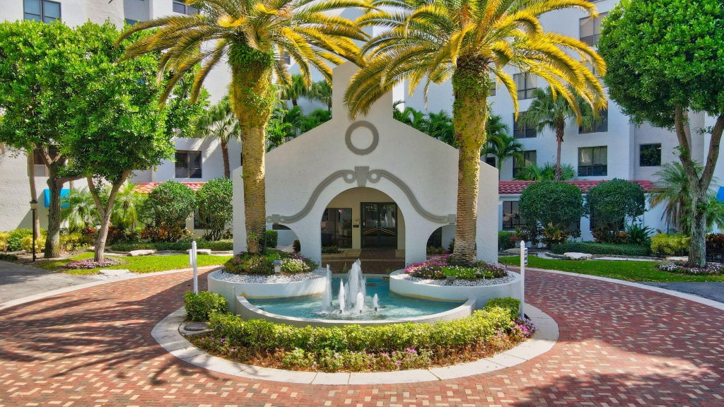 This stunning high-floor Imperial model boasts all impact glass windows and gorgeous golf and water views. Perfect floor plan with foyer entrance and extra large living room with tile floors, new lighting, fans, leading to a huge enclosed wrap-around patio with NE exposure and formal dining room. The kitchen is a chef's dream, with laminate floors, wood cabinets, granite countertops, and an open layout to the living room. The island has a stovetop, a new dishwasher and cooktop, a beverage frig, and a pantry with glass cabinets. Plus finished office with a desk and built-in cabinets. The master bedroom has laminate flooring, extensive built-ins, a huge closet with drawers, shelves, cabinets, a safe, and an additional closet. Garage parking in this upscale condo!