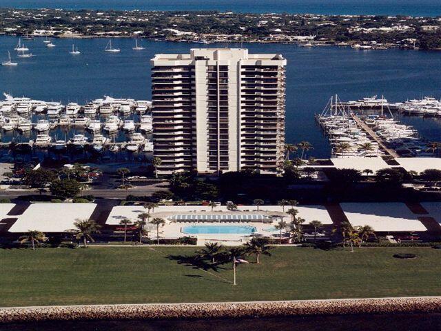 PRIME LOCATION. Larger 2 bedroom corner apartment in well maintained building. Located in a gated waterfront community mid building level with awesome view of Lake Worth, Ocean and OPC Marina's. Split bedroom plan with updated open kitchen, formal dining room, large open living room with sweeping water and ocean view. Travertine with bedroom carpeting, separate utility/washer/dryer area plus extra a/c storage by your door. newly replaced a/c unit, updated appliances, cabinets and bathrooms. Covered parking space included. Located on the Intracoastal in North Palm Beach, conveniently close to everything you need.