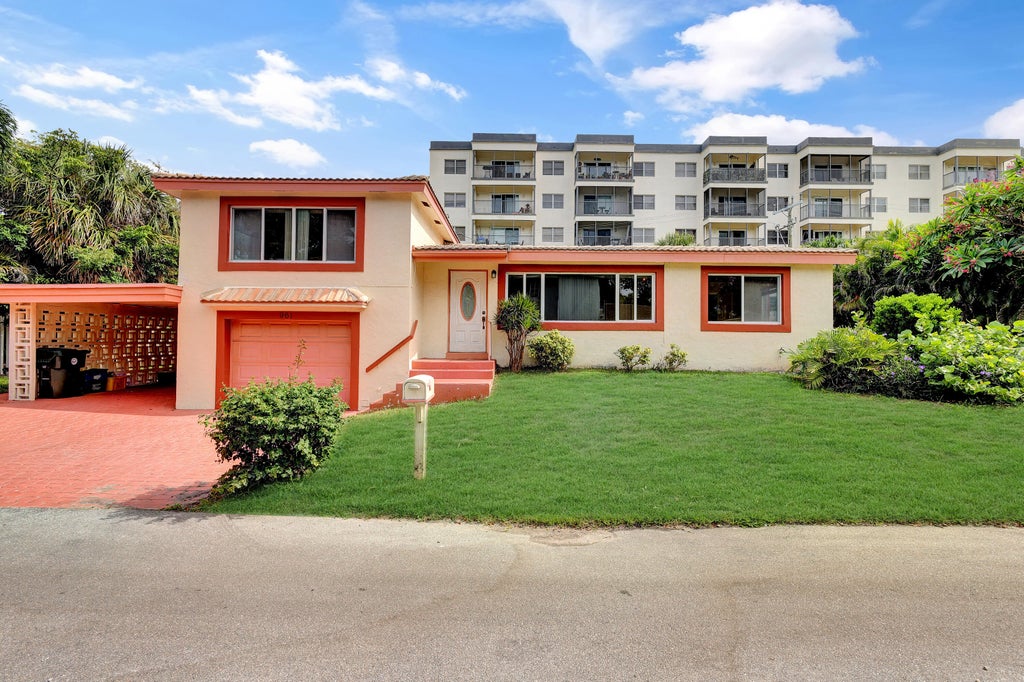 STEPS TO OCEAN: Rare opportunity in one of Boca Raton's top barrier island neighborhoods. This three bedroom, two full-bath home is situated on an approximate 8,750 square foot lot and is located on a private road. The property comes with private access to the beach and also to Lake Wyman/Intracoastal. The home has Dade County pine floors in two upstairs bedrooms with Terrazzo flooring throughout the main level. There is a one-car garage, plus an attached carport. The home is conveniently located close to all restaurants, shopping, groceries, gas stations and drug stores. Several city parks - including Spanish River Park directly to the north and the nine-hole Red Reef golf course to the south - are within easy walking distance. Boca Raton is home to Florida Atlantic University, Lynn