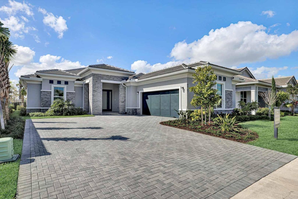 The stunning LEWISTON CONTEMPORARY home offers an expansive, open-concept floorplan perfect for modern living. A spacious, covered lanai extends your living space outdoors, creating an ideal setting for relaxation or entertaining by the private swimming pool. The chef-inspired kitchen boasts a large center island with a breakfast bar, abundant counter space, and ample cabinetry. The luxurious primary suite features dual walk-in closets and a spa-like bathroom with a dual-sink vanity, providing the perfect retreat. Plus, this exceptional home is just a short distance from The Pearl Clubhouse.Located within the prestigious Regency, a manned-gate, active adult (55+) community with exclusive 21,000 s.f. clubhouse.