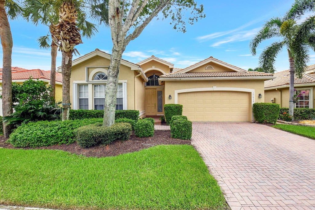 Price reduced for quick sale!! COME LIVE THE FLORIDA DREAM in this meticulously maintained water view 3 bedroom (3rd bedroom used as a den) with 2 baths. Highly sought after Mediterranean model, rarely available. This luxurious home has a huge foyer that leads into the combined living room and family room with a 30 ft. expanse with large windows. Living room and master bedroom have beautiful water views. Coffered ceiling with recessed lighting. Enjoy the sunset on your huge screened and covered patio facing the lake. Master Retreat has 2 walk- in in closets with ensuite bathroom, roman tub with separate shower. 2 car garage. COME PLAY PICKELBALL in Valencia Pointe. 35,000 sq. ft. clubhouse with tennis, 4 pickleball courts. fitness center, social activities and entertainment.