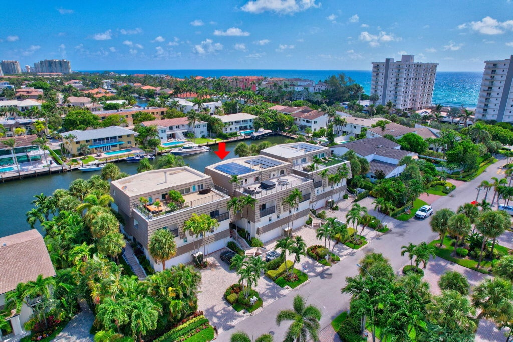 If you have ever dreamed of beach living with boat dockage, in a very private, laid-back setting, look no further. Rarely available, beach townhome in Highland Beach, just steps from the ocean. Private beach access and 33' of boat dockage on deep water canal, with ocean access and no fixed bridges. Property has been totally renovated with top-of-the-line features which include an incredible Sonos sound system along with an Enphase, four bank battery backup system installed by Urban Solar and a two EV charging system. Also has a commercial Starlink satellite dish. Beautiful water views from 3 balconies plus a huge rooftop sundeck. All assessments have been paid by owner including $25,000 for a new dock. Being sold turnkey.