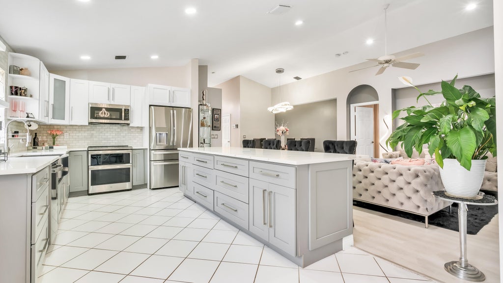 Calling all foodies! This gourmet kitchen is a dream come true. Featuring high-end appliances, custom cabinetry, and plenty of counter space, you'll love cooking and entertaining in this space! This beautifully updated 3 bedroom 2 bathroom property has an enclosed sunroom for all your sport event entertaining or makes for a great kids play area! Crescent Lakes is one of the most well managed HOA's in Boca featuring a Clubhouse, updated gym, resort style pool and hot tub, 2 Tennis courts and auto gates. Enjoy all the amenities, lawn care and management with NO membership entry fee and Low monthly HOA dues. (The HOA also maintains significant reserves). With space for everyone and top rated schools nearby, you'll love living here!