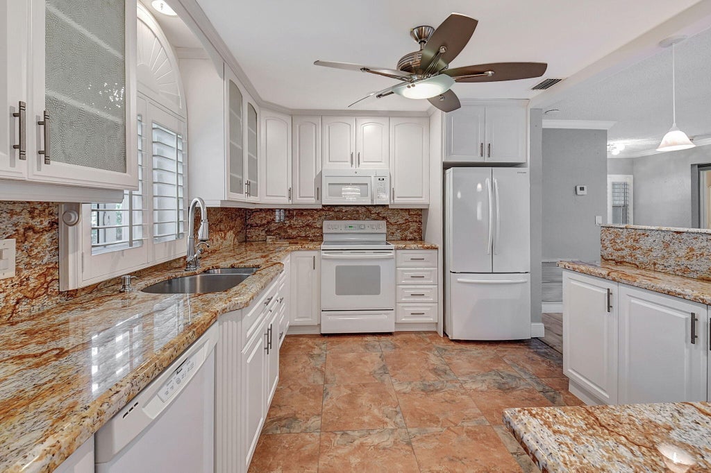 Embrace the tranquil charm of this beautiful & clean 2 Bedroom 2 Bath corner Villa! This home features a delightful gourmet open kitchen w/ granite countertops, lots of cabinetry. The lovely ceramic tile flooring in kitchen adds to its charm. Additionally, the main living areas boast high quality wood laminate floors, creating a clean & modern atmosphere. The spacious Bedrooms offer ample closet space, and plantation shutters throughout the home add a touch of elegance. To enhance your experience, you can enjoy your morning coffee or evening drinks on your very own on front screen in porch. Furthermore, Delray Villas Plat 1 is a vibrant 55+ community w/ low HOA fees and offering clubhouse, billiards, pool, pickleball, tennis, gym shuffle ball & many other activities. Call for appt today