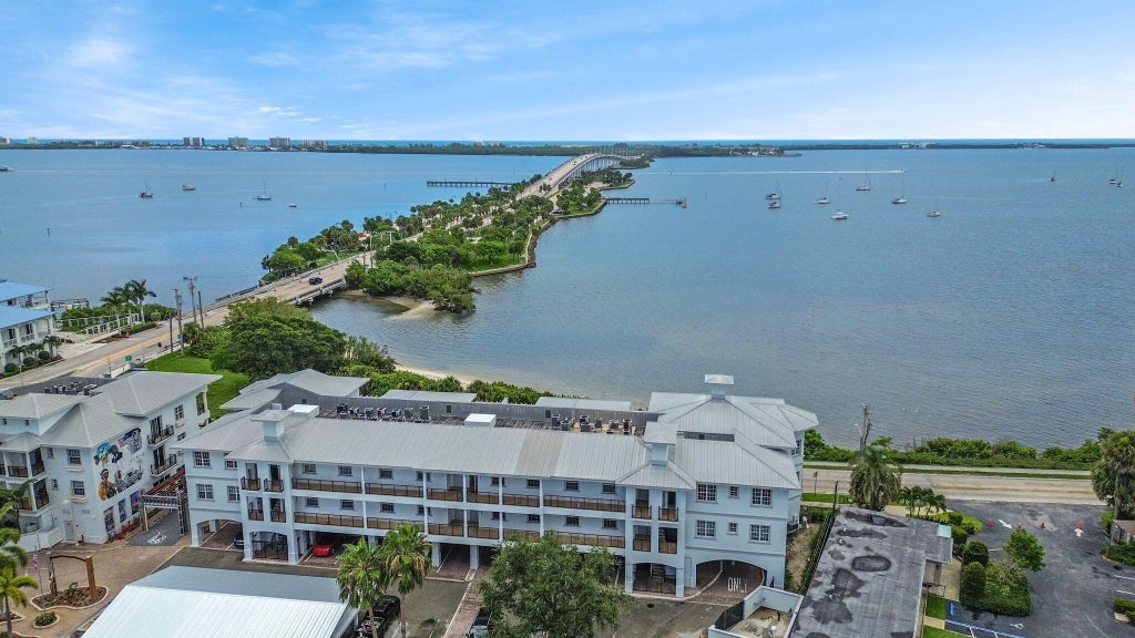 Great 3rd floor Unit with spectacular views of the Indian River and the Jensen Beach Causeway. Semi-private elevator, Impact windows, high vaulted ceilings, granite counter tops with stainless steel appliances, open patio. Community has heated pool and covered parking. Owners can go right downstairs to the coffee and ice cream shops as well as to nearby restaurants. A couple of blocks and you can throw a fishing pole off the pier, drop in a kayak or launch a boat. Beautiful sandy beached located just across the Causeway on Hutchinson Island.