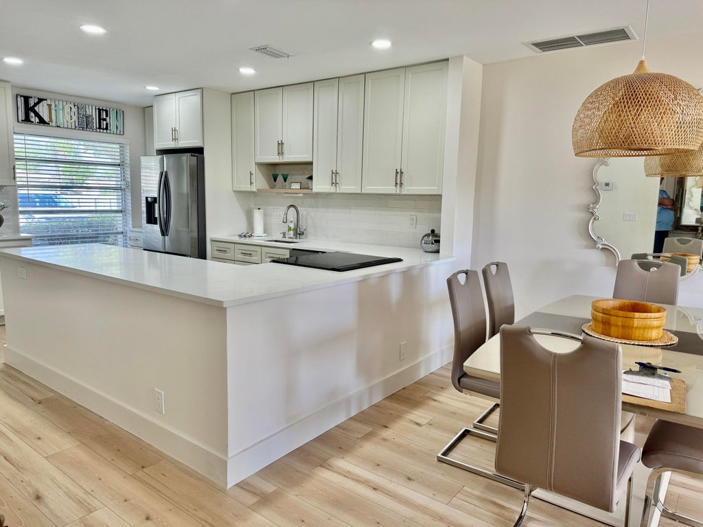 Welcome to your retreat in the desirable 55+ community of Boca Lakes! Enjoy the convenience of one-story living with modern upgrades and brand new furniture throughout. The inviting living area features an open floor plan with stylish laminate flooring & plenty of natural light. The newly updated contemporary kitchen boasts sleek white cabinetry, stainless steel appliances, & a large island, perfect for entertaining. The spacious bedroom offers comfort & tranquility, with ample closet space. The full bathroom is also beautifully updated. Step outside to the private patio, ideal for relaxing & enjoying the Florida sunshine. Boca Lakes offers a variety of amenities including a clubhouse, community pool, & social activities. Available for seasonal rental as well.