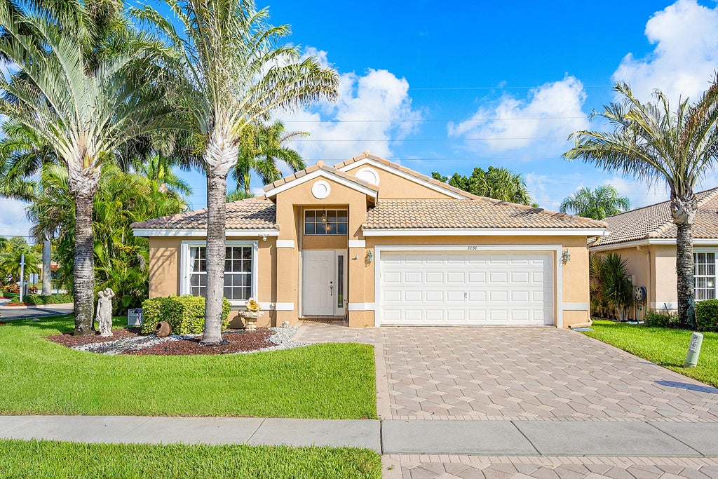 Beautiful & open freshly repainted 3 bed, 2 bath, 2 car garage home located in the desirable Grande Palm community. Vaulted ceilings, tile throughout, semi open, split floor plan, oversized back yard that can accommodate a private pool, sleek brick paver driveway. This is a great ALL AGE, pet friendly neighborhood of only 61 single family houses, within walking distance to house of worship. Enjoy amenities like a swimming pool, tennis/pickleball, gated entrance, cable, total tree & lawn care, & common area maintenance. All for only $288 per month HOA fees!!