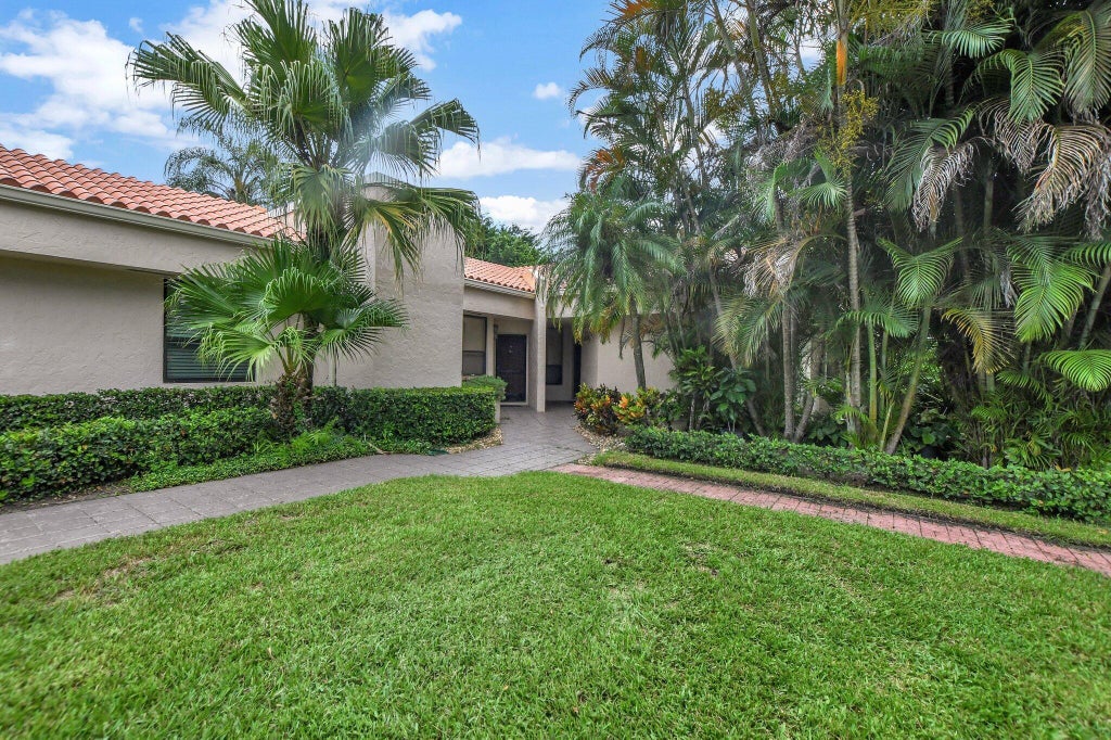 Discover this spacious 2/2 condo with stunning garden and golf course views. The kitchen boasts updated white cabinets, stainless steel appliances, and granite countertops. Enjoy laminate floors in the living room and cozy carpet in the bedrooms. The living room opens to a glass-enclosed patio, while the kitchen features a screened patio. Additional storage is available with a large closet in hallway. The master bedroom offers overhead lighting and a walk-in closet, with bathroom featuring double sinks, a separate tub and shower, and a skylight. Convenience is key with covered parking right out front. A/C 2018. The villa is located very close to the community clubhouse and pool, with access to a second pool and two tennis courts.