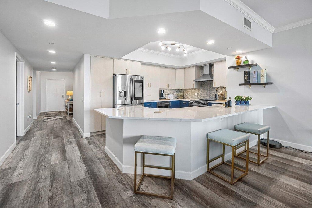 MOTIVATED SELLER. 18th floor 3BR/3BA overlooking the Intracoastal & ocean. Extensive $70k+ remodeled chef's kitchen, Bosch A/C 2000, must see! Impact glass, semi-private elevator access. Open concept, neutral colors, split floor plan w/LVT thru-out living areas & carpeted bedrooms. Spacious owners suite w/his & her walk-in closets. Primary bath w/double vanity, jetted bath, water closet. Open kitchen w/stainless steel appliances. Assigned garage parking & climate-controlled storage unit. 24/7 manned gate, valet, NEW tennis, NEW pickleball and bocce, walking path w/gazebo, Newly renovated rooftop oasis w/pool, spa, BBQ areas, clubhouse, billiard room & fitness center. Adjacent marina w/dry docks. Jump on your boat effortlessly & be on the ocean in minutes; no fixed bridges! Pet friendly