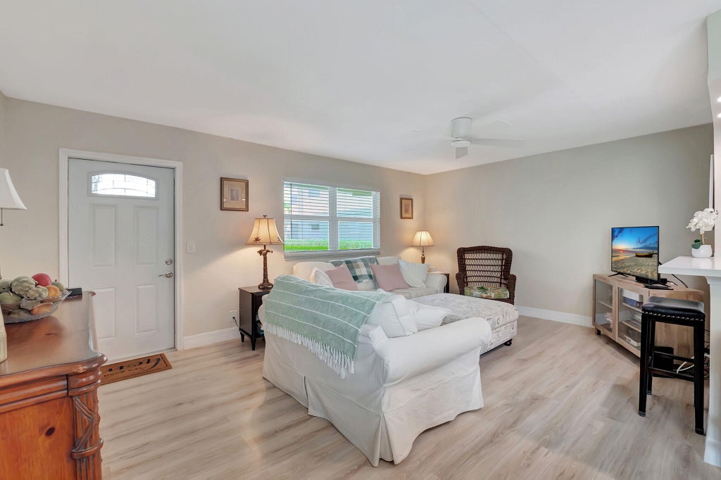 This charming 1-bedroom, 1.5-bath condo in Delray Beach offers a sleek and modern living space, ideal for those seeking both style and functionality. The open-concept kitchen serves as the heart of the home, featuring elegant white shaker cabinets, stainless steel appliances, and quartz countertops that add a touch of luxury. The deep stainless-steel sink provides ample space for meal prep, while the custom up lighting creates a warm, inviting atmosphere. The kitchen is further enhanced by a refrigerator with in-door ice and water, making it as practical as it is beautiful. Perfectly situated in Delray Beach, this condo combines convenience with contemporary design for a sophisticated coastal lifestyle.