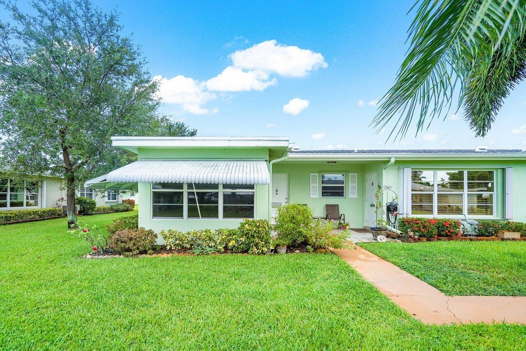 Come and See It! Quaint neighborhood in East Boynton Beach that is well kept and well managed. Villa style Nice size 2 bedroom/2 bath on one level, with large living room. The Florida room floor raised & finished with new windows to be extra office or den. Brand new electric panel! No worries of Milestone inspections or enough reserve money. New roof and paint 2023. A/C 2017. The HOA offers a heated pool, clubhouse, wifi, cable, intranet, water, insurance, and manager on site.