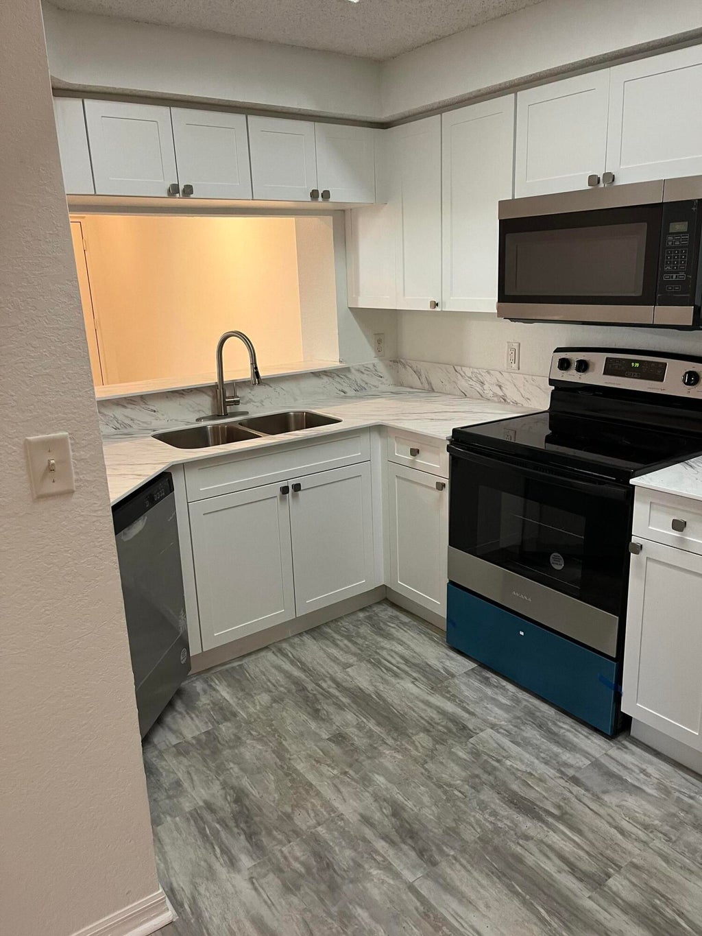 Nicely update 3 bedroom 2 bath unit with new kitchen cabinets, counters and appliances.In addition the unit has all new carpeting throughout. This is a must to see.