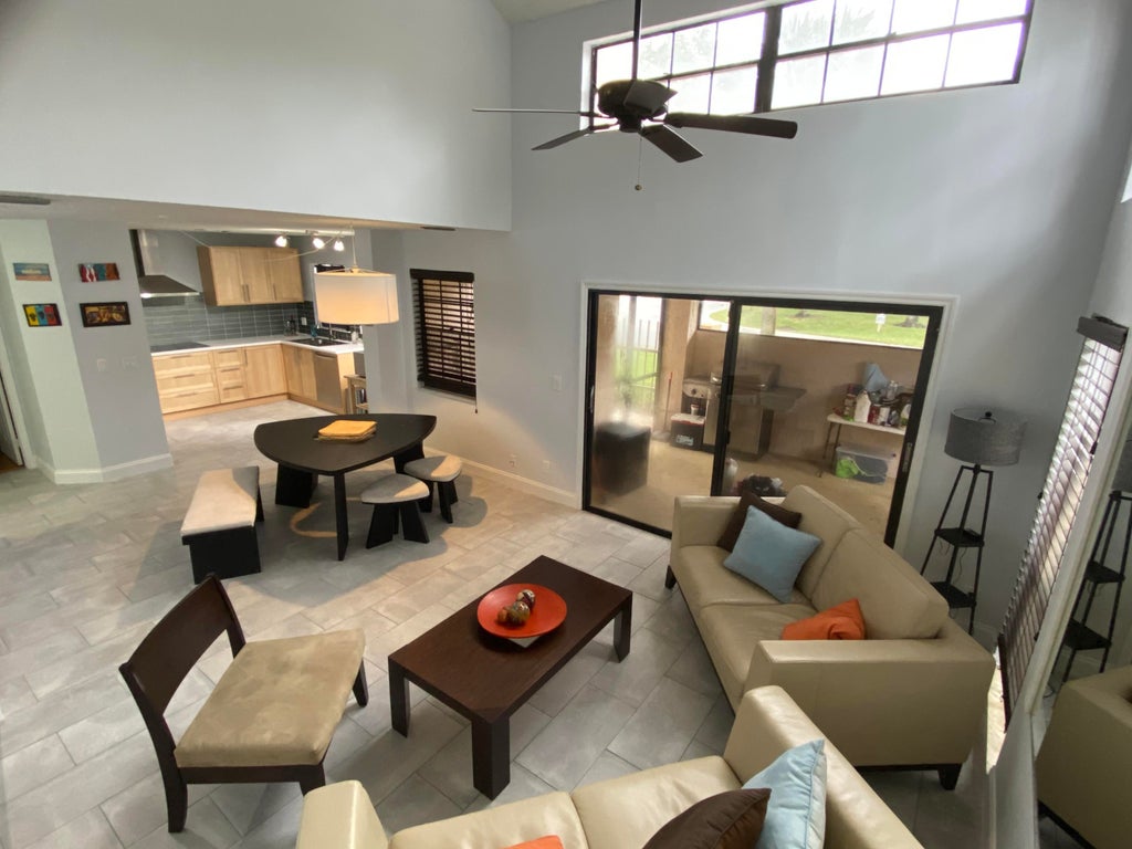 An absolute must see and not to be missed! Furnished Annual lease only. Spectacularly renovated and fully furnished 2 bedroom, 2 bath 2-story townhome with chic contemporary styling. 1 year lease. One bedroom upstairs, 1 bedroom downstairs. Screened patio and large open patio. High ceilings, durable ceramic wood-look tile, 2 assigned parking spaces. Clean background and decent credit required. First, last, and security due prior to move in. Pets may be considered on a case by case basis.