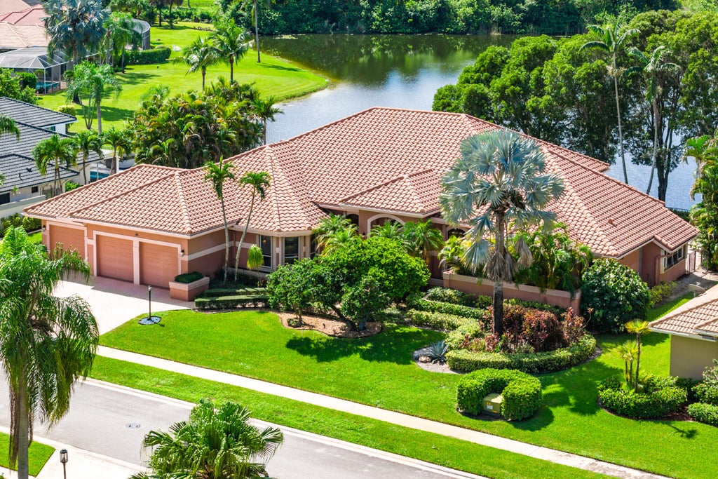 Spectacular 1 story, lakefront, pool home on over 1/3 acre with much privacy. 4 bedrooms, 2 dens, & 4.5 updated baths, & modern kitchen, perfect for any chef. Kitchen is outfitted w/top of the line, stainless steel appliances, stone countertops, glass cabinets to ceiling, two tone uppers & lowers, 2 pantries, & working island. Primary bedroom suggests a 5 star hotel suite w/den, grand en-suite bath, & 2 walk-in closets w/superior built-ins. Home impresses w/crown molding & dramatic ceilings. 3 car garage grants further storage. The covered & screened back patio leads to an open, sunny pool & spa, all ideal for entertaining. Take in the serene views from home while living in a Golf & Country Club Community including endless amenities.Membership Required.