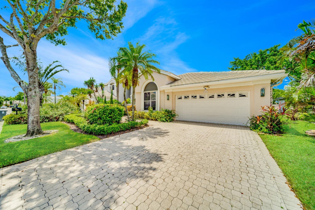 Dramatic entrance with 11 foot volume ceilings throughout & picturesque windows that flood the inside with natural light. Enjoy the sense of openness, volume, & space. Single story home in The Palms at Boca Pointe with over 2000 square feet of living space, and over 2400 total square feet, features 3 bedrooms, 2 baths, a 2 car garage, a huge sparkling swimming pool, & a tropical garden with a lot of greenery. Enjoy spectacular sunset views every evening with the west-facing backyard plus no rear facing neighbors. Move the party outside in this home which is perfect for entertaining or relaxing. Thrilling Outdoor space! French Baroque Marche solid engineered wood flooring throughout this home and tile in the bathrooms. Updated high-end gourmet kitchen features quartz counter tops