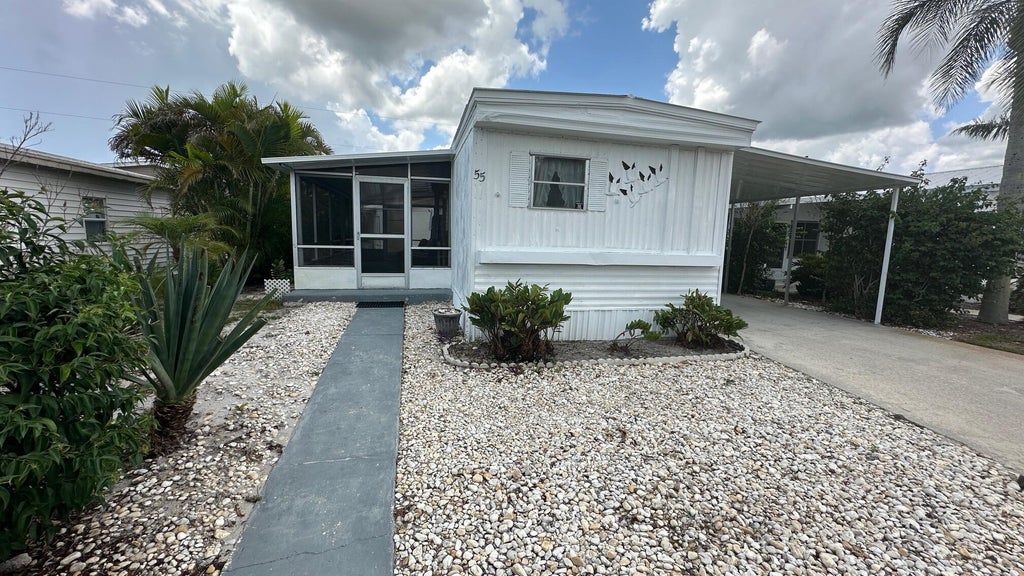 AFFORDABLE LIVING IN PARADISE! 2 Bedr/ 1 Bath Singlewide in Sea Breeze Mobile Manor CO-OP Park in Hobe Sound. Sea Breeze is a 55 + COMMUNITY with a very active clubhouse, community pool, shuffleboard & a host of clubs & activities. Each Bedroom is at opposite sides of the home for privacy. There is also a large screen room on the left side of the home. The Kitchen is open to the living room for ease of entertaining. The carport can accommodate 2 cars & has a large storage shed new in 2008. The monthly fee is $220.00 and includes Lawn care, water/sewer, trash removal & all the amenities. Pet friendly. Minutes to the pristine ocean beaches of Jupiter Island, restaurants, shopping & entertainment. 40 mins to Palm Beach International airport. Cash only.
