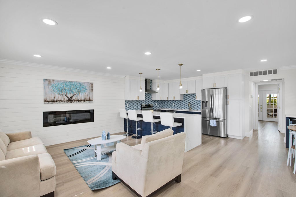 Walk right in to this beautifully newly renovated villas in the heart of Delray Beach. As you step inside you'll automatically notice the open-concept design & tasteful upgrades throughout. This unit boast quartz countertops, new stainless steel appliances vinyl floors, a decorative fireplace and new cabinets with ample storage space. Both bathrooms feel as if you are in a spa with thoughtfully designed walk in shower. Outside, the private enclosed patio provides a serene escape over looking the water and golf course where you can have your morning tea/coffee or relaxing meal. The community amenities include a clubhouse, fitness center, swimming pool and clubs where you can socialize to stay active.