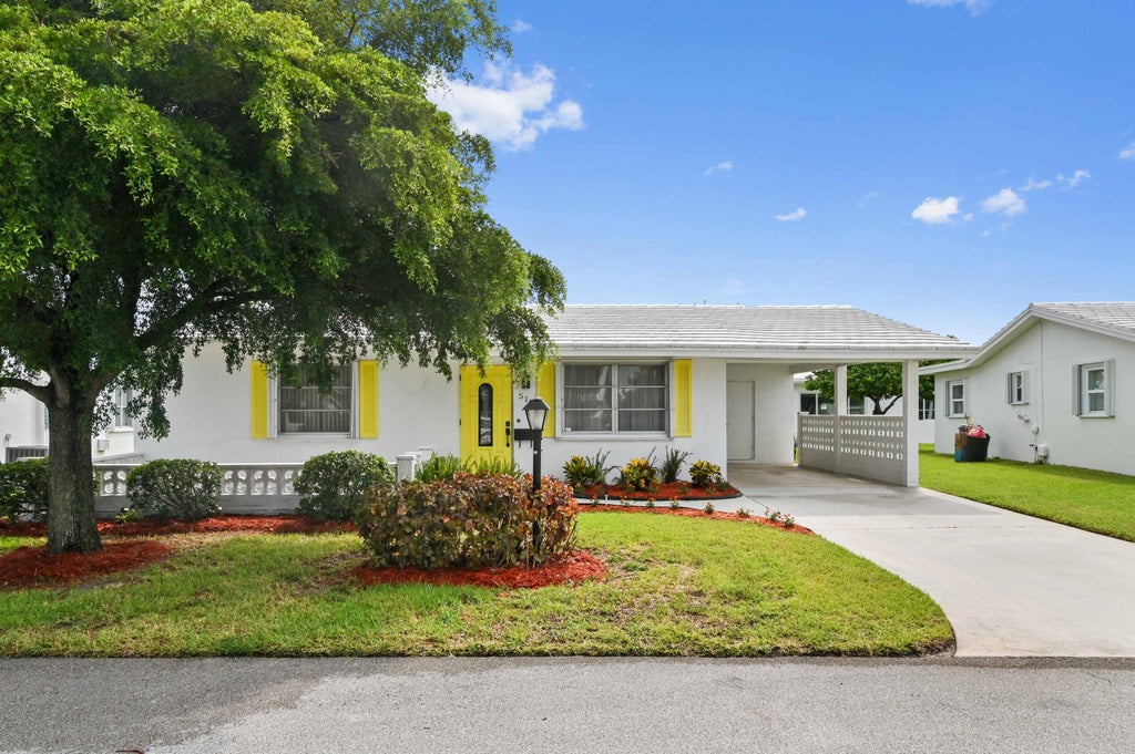 Welcome to this delightful 2-bedroom, 1-bathroom single-family home in the sought-after 55+ community of Palm Beach Leisureville in Boynton Beach. Recently serviced in May 2024, the AC and water heater ensure comfortable living year-round. This home also features a spacious back porch and carport, both upgraded with durable epoxy flooring, adding a modern touch to your outdoor spaces. For your safety, all windows are equipped with security locks, and battery-operated smoke alarms are installed throughout.Enjoy the breeze from lighted ceiling fans in every room, enhancing both comfort and style.Inside, the upgraded bathroom is designed to be handicap-friendly, offering ease of use and accessibility.