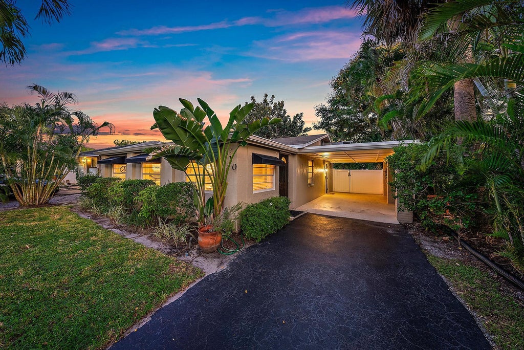 Welcome to a serene and secluded tropical paradise, a hidden treasure nestled in the heart of Jupiter. This beautifully renovated 3-bedroom, 2-bathroom residence offers an inviting and comfortable living experience, spanning over 1,220 square feet. As you step through the front door, you'll be greeted by an airy and luminous space, bathed in natural light, and enhanced by modern lighting fixtures that complement the ambiance. The home boasts luxury vinyl flooring throughout, seamlessly blending with the elegance of tile in the bathrooms, adding a sense of style and durability.The home has been updated with attention to detail, featuring crown moulding and wainscoting in the family room that add a touch of charm and sophistication.
