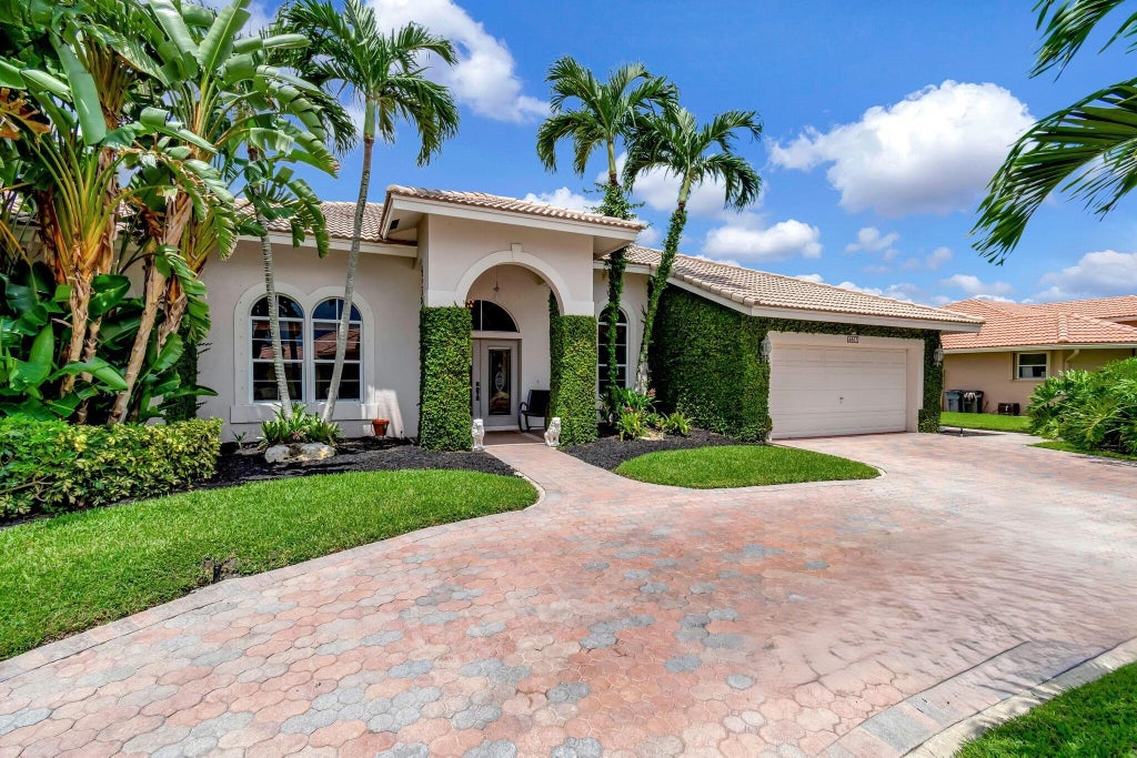 Welcome to this sprawling 1 story home located in the guard-gated community of Cypress Creek. Spanning 2,500 sq ft under air, this residence offers 4 bedrooms, 3 baths, and a 2.5-car garage. The lushly landscaped exterior of the home features charming climbing vines that adorn the entryway and frame the garage, creating a lush and inviting atmosphere. The striking glass double doors add a touch of elegance upon entering the home. Once inside, you'll be greeted by soaring high ceilings and captivating views of the pool, which features a waterfall and an expansive pavered patio area perfect for outdoor entertaining. The home boasts a formal dining room, spacious living room, and an open family room that seamlessly connects to the kitchen. On the east side, you'll find 2 bedrooms