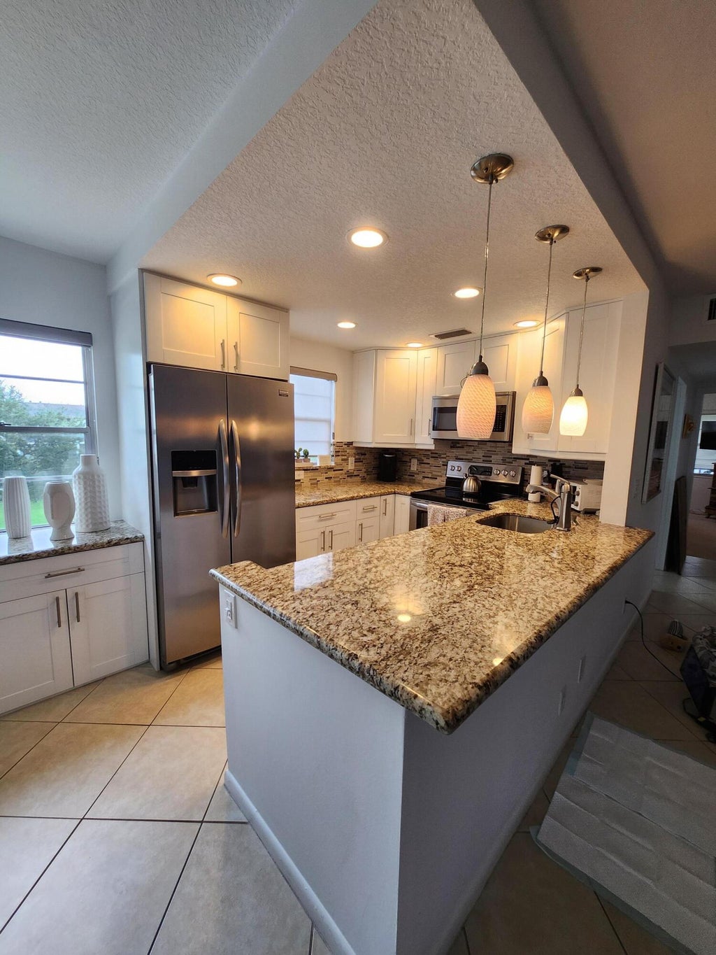Spectacular corner offers a spacious 2-bedroom, 1.5-bathroom layout. Furnished - Move in Condition. With tile flooring. Abundant natural light fills the space through numerous windows, enhancing the inviting ambiance. Screened patio, an additional closet for storage. This unit is fully functional and move in ready Experience the comfortable living this home provides and explore the array of amenities such as Pickleball- Tennis, Shuffleboard, State of the art Gymnasium, library, available in this wonderful Century Village community. Active 55+ community clubhouse which shows free movies, pool, free bus service, 24 hour manned security a true resort style living. cable-HBO, Internet and water included in your maintenance. Close to major roadways, shopping & 20 Min to Beach. Annual - $1,950