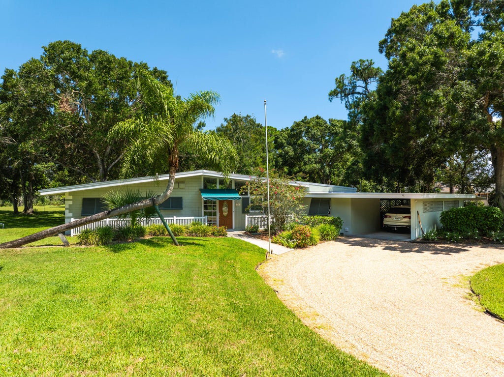 This 3/2 home loaded with character and old Florida charm sits on 1.05 acres with a POND and 2 outbuildings. 2023 METAL Roof! The shop is air conditioned with a roll up door and covered porch. Vaulted beamed ceilings & lots of light with 2 sliding doors to peaceful and shady back yard. Located in an established part of Vero, close to beaches & shopping