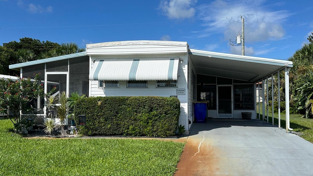 LIGHT & BRIGHT EXPANDED SINGLEWIDE! 2 Bedrms/2 Baths. The living area has a very open feel where the Living Room is open to the step-down Family Room & the kitchen is open to the Living room. The Kitchen is large w room for table & chairs or an island. SPLIT PLAN - bedrooms at either end of the home. The Master Bedrm, at the back of the home, is unusually large w multiple closets & adjacent full bath. The 2nd Bedrm is at the front of the home w ensuite bath w step in shower. There is also a screen room w vinyl telescoping windows to keep the elements out. The shed is large & another great area for storage as well as housing the washer/dryer. New A/C 2016, roof just coated/sealed. Multi camera security system. Minutes to beaches, boat ramp & shopping. YOU OWN THE LAND - CASH ONLY - PETS OK