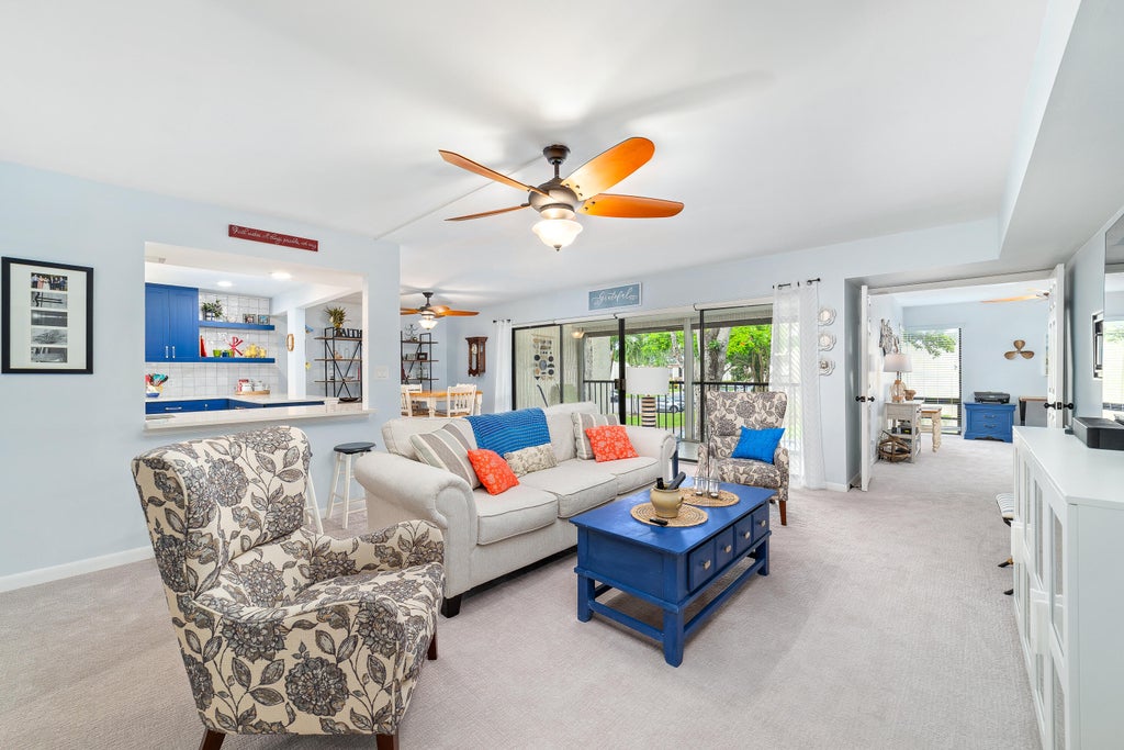 GORGEOUS and spacious 3 bedroom, 2 bath home in fantastic Woodhaven, a 55+ community in Boca Raton! Tastefully renovated in 2022, it boasts an open floor plan and LED lights that make this home feel bright and airy. The open-concept kitchen is equipped with stunning quartz countertops, soft-close shaker cabinets, dark silver, fingerprint-hiding Samsung appliances (new in 2022), beautiful backsplash and water filtration system. Master bedroom includes en suite bathroom and walk-in closet; secondary bedroom also includes a walk-in closet; third bedroom/den has standard closet. Bathrooms are updated with new soft-close cabinetry, tile, quartz countertops and showers with seamless glass enclosures. New washer and dryer as of 2022. Relax on the generously sized covered and screened-in patio.
